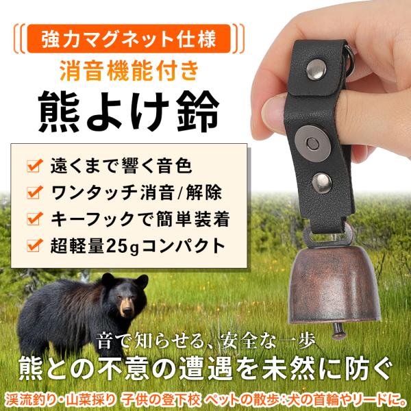 熊との遭遇を回避する熊よけの鈴2個セット 消音機能 強力磁石