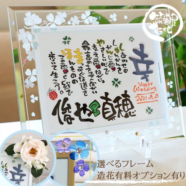 結婚祝い 結婚記念日 2人の名前 プレゼント 名前ポエム ガラスフレームBlue 名前詩 ギフト 誕生日 紙婚式 銀婚式 結婚式 感謝 両親 名入れ