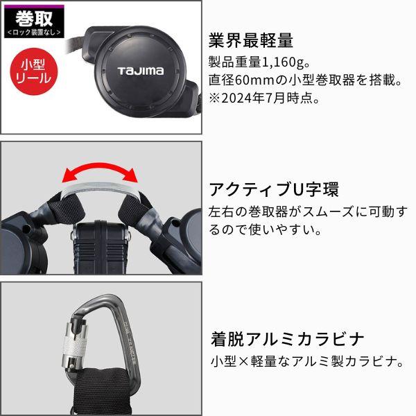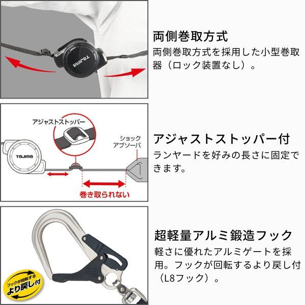 在庫 TJMデザイン タジマ A4CR150F-WL8 ハーネス用ランヤード CR150F ダブルL8 巻取式 軽量 小型 高所作業 墜落制止用器具 あすつく対応