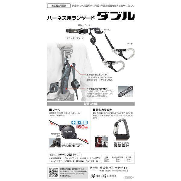 TJMデザイン タジマ ハーネス用ランヤード CR150F ダブルL8 巻取式 軽量 小型 高所作業 墜落制止用器具 安全帯対応 ダブルランヤード アルミ鍛造フック 新規格対応 落下防止 建設現場必須 耐久性抜群 プロ仕様 衝撃吸収機能付き 高強度ロープ 高性能巻取機構 工具メーカー品質 信頼性高い 高所作業者必携 安全用品 鳶職 足場作業