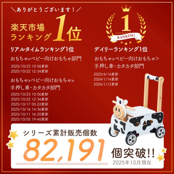 手押し車 赤ちゃん ウォーカー&ライド カウ デラックス 1歳 誕生日 プレゼント ランキング 一歳 おもちゃ 知育玩具 木のおもちゃ アイムトイ 1歳児 カタカタ