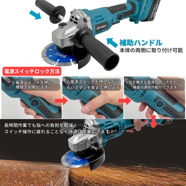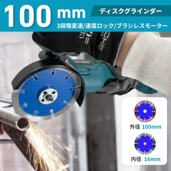 マキタ 互換品 充電式 グラインダー ディスクグラインダー サンダー 研磨 ブラシレスコードレス 電動 18V 14.4V makita バッテリー 対応 100mm (GR10003-BL)