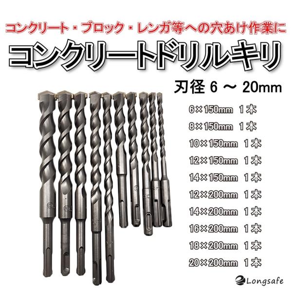 マキタ 互換品 makita コンクリート ドリル ビット ロング ハンマードリル コンクリート用 SDS プラス シャンク 穴あけ 金属 木材 刃径6-20mm 10本 (CDB1001)