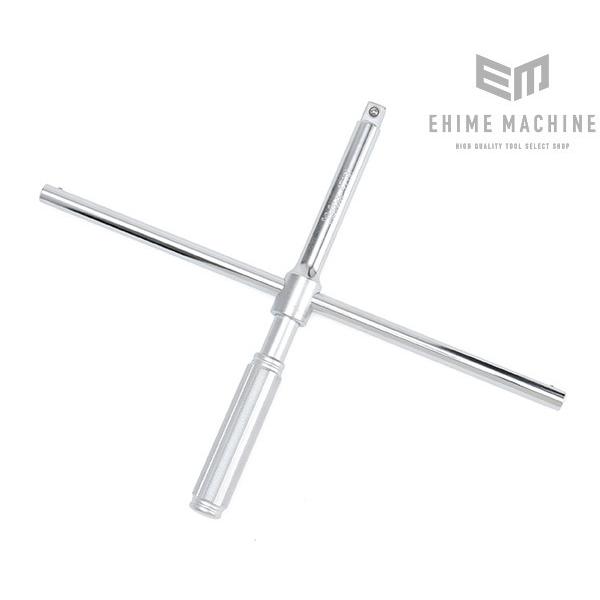 回転軸にブレがないため、グリップ部を持ってハンドルを回せば、高速回転可能!通常の十字レンチよりも、圧倒的に早く作業が完了します。