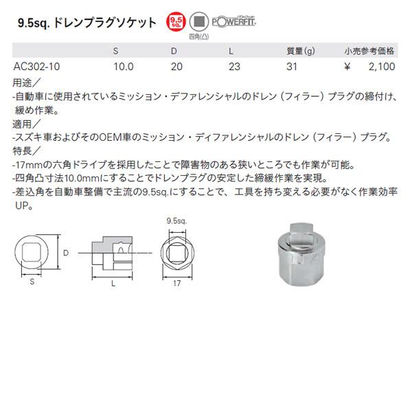 KTC AC302-10 9.5sq.ドレンプラグソケット スズキ車専用