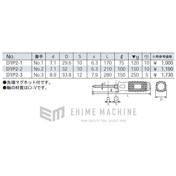 【ワケあり特価品】(状態A) KTC D1P2-2-602 樹脂柄プラスドライバー 貫通タイプ 番手No.2 京都機械工具