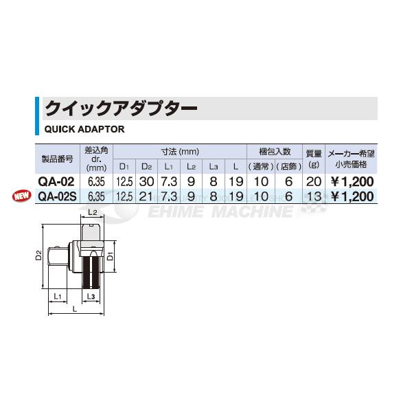 TONE ソケットアダプター クイックアダプター 差込角6.35mm 全長19mm (QA-02S)(4953488402834) トネ【ネコポス対応】