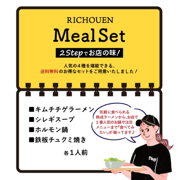 冷凍 ミールキット バラエティ4種セット C ( ホルモン鍋 鉄板チュクミ焼き キムチチゲラーメン シレギスープ ) お取り寄せ 冷凍食品 お試し 韓国料理 李朝園