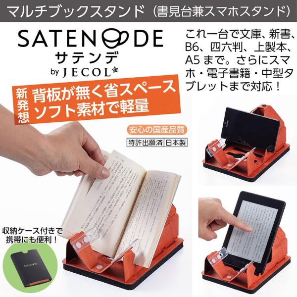 片手でページをめくる ブックスタンド サテンデ 日本製 ジェコル 正規販売店 送料無料 折りたたみ ブックホルダー 書見台 読書台 スマホ iPad プレゼント
