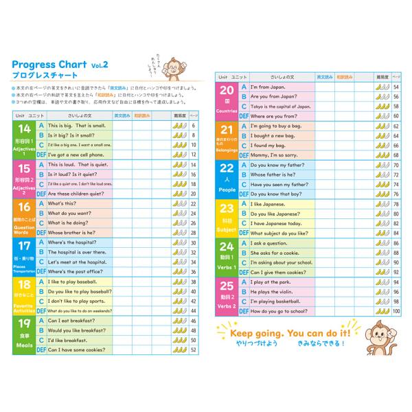 小学生で取得しておきたい単語やフレーズ、発音、文法など総合的な英語力が身につくよう工夫が満載の学習内容。