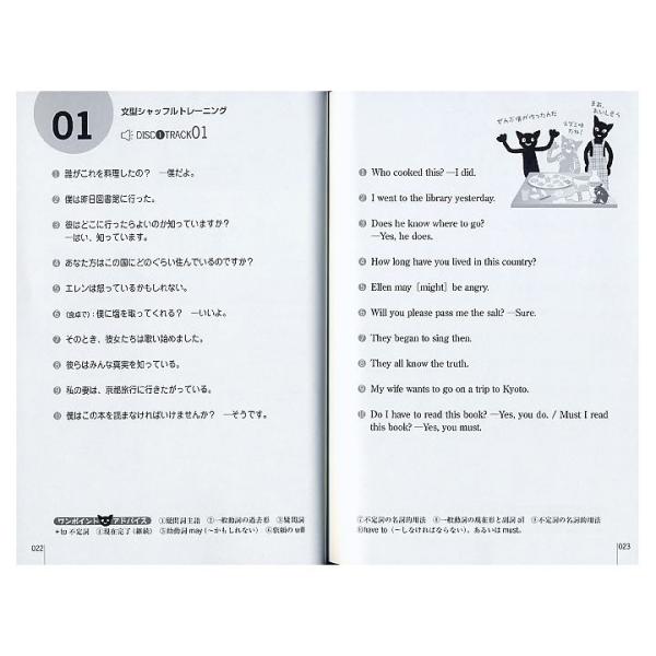 前半は反射力強化、後半は複数文型を組み合わせた長めの英文で応用力を養成。