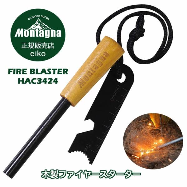 Montagna 木製ファイヤースターター HAC3424 木製ハンドル 火打ち石 火起こし マンガン鋼 マグネシウム 着火具 防災 モンターナ キャンプ アウトドア