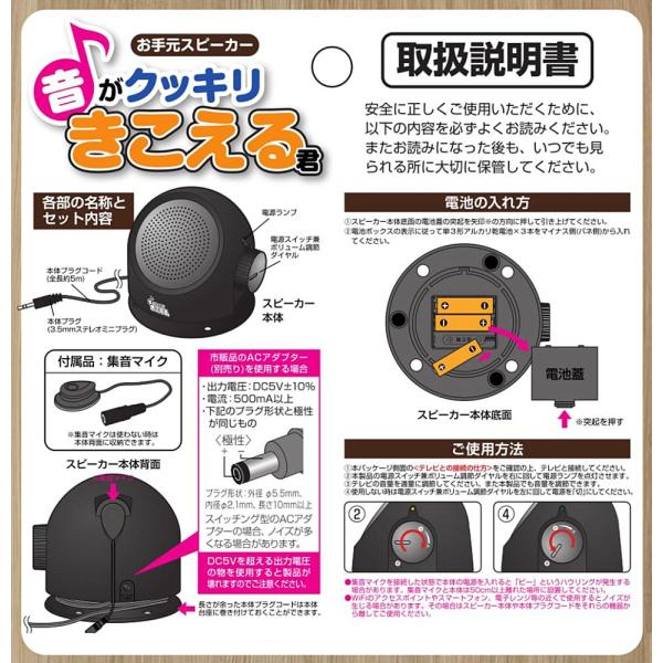 お手元スピーカー 音がクッキリ聞こえる君 電池式 コード5m サウンド 拡張スピーカー 深夜 年配 音 配慮