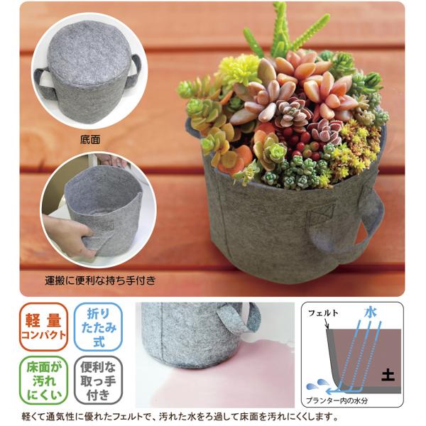 フェルトプランター 丸型3個セット グレー 折りたたみ ガーデニング フェルト 鉢植え