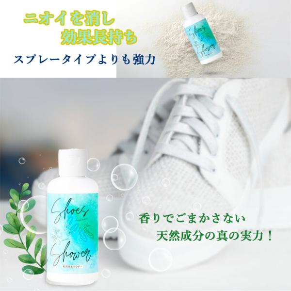 靴 消臭 パウダー シューズシャワー 天然成分 ミョウバン 銀 イオン 緑茶 サルチル酸 粉を入れるだけ ブーツ スポーツ シューズ 足の臭い 消臭 除菌