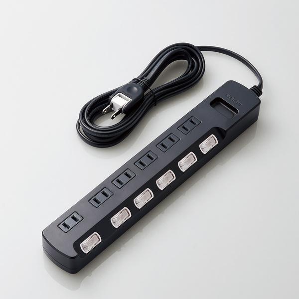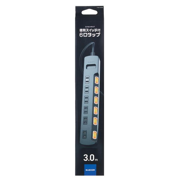 エレコム 電源タップ ほこり防止シャッター付 雷ガードタップ 6個口 コードタップ コンセント 延長コード タップ OAタップ ブラック 3.0m┃T-K6A-2630BK