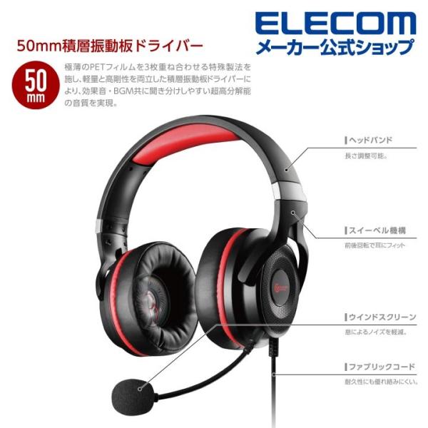 ゲーミング ヘッドセット オーバーヘッド 50mm積層振動版ドライバー ゲーミングヘッドセット ヘッドホン マイク 付 ブラック┃HS-G60BK エレコム 在庫処分