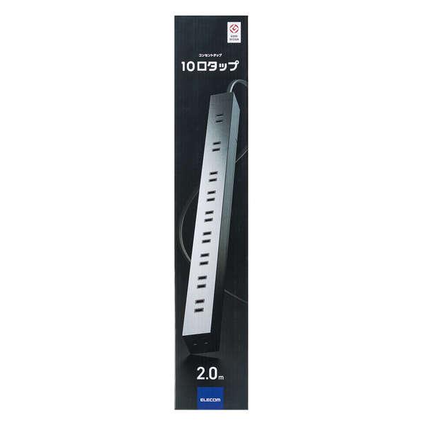エレコム 電源タップ 2.0m 10個口 コードタップ コンセント 延長コード タップ OAタップ オフィス 延長ケーブル コード 10口タップ ブラック 2m┃ECT-0102BK