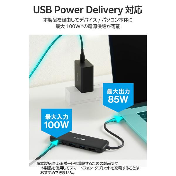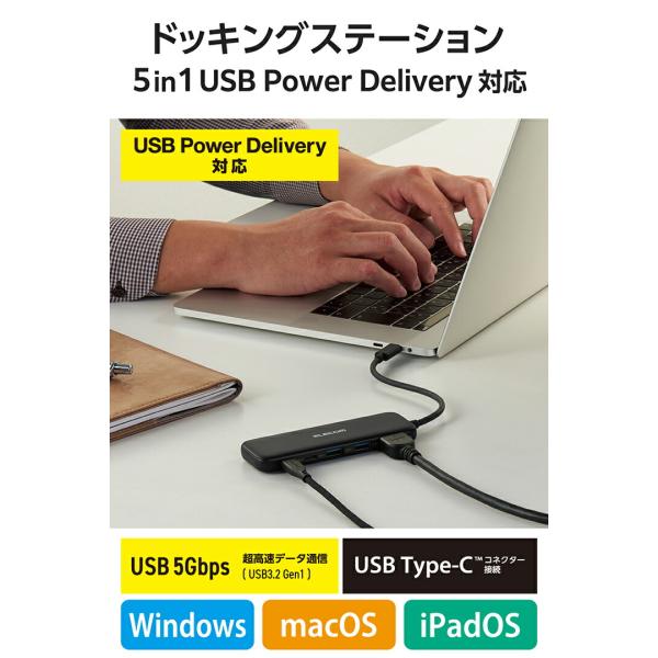 エレコム ドッキングステーション タイプc USBハブ USB拡張 高速 Macbook Windows テレワーク 5in1 USB Power Delivery対応 ブラック DST-W01
