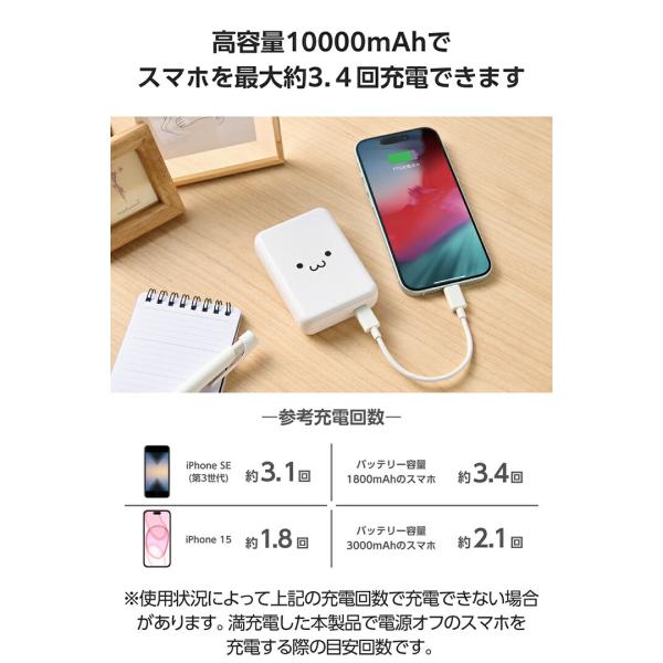 クレジットカードとほぼ同じ大きさで、約200gと軽量ながら容量は10000mAh。スマートフォンを約1.8回満充電できる安心の大容量。かばんに忍ばせていつでも持ち歩ける、コンパクトタイプのモバイルバッテリーです。 ※3000mAhのスマートフォンの充電可能回数の目安です。