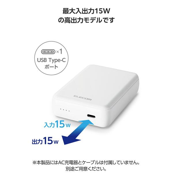 モバイルバッテリー 超コンパクト 10000mAh 3A USB Type-C×1 15W リチウムイオン電池 10000mAh USB Type-C入出力×1 ホワイト EC-C16WH エレコム 在庫処分