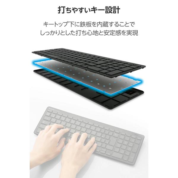 一枚板のように美しい最薄部6.5mmの薄型設計! 安定した通信で快適に操作できる2.4GHzの無線薄型コンパクトキーボード。
