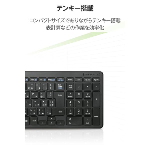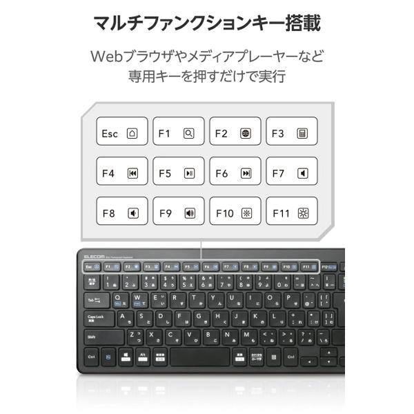 エレコム キーボード 無線 薄型 2.4GHz ワイヤレス コンパクトキーボード 日本語配列 軽量 小型 メンブレン式 ブラック TK-FDP099TBK/EC