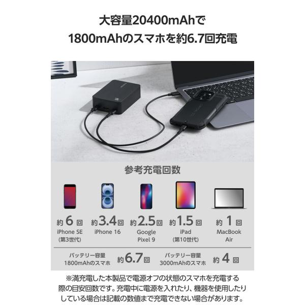 モバイルバッテリー 20400mAh 大容量 PD ブラック