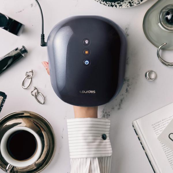 手のひらを包み込むグローブ型で指先まで気持ちよくほぐすマッサージャー