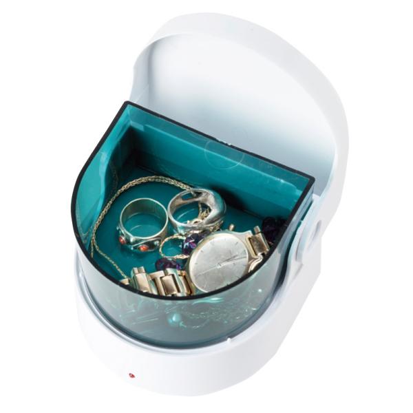 水と洗浄剤を本体に入れてスイッチオン。毎分5800回の強力振動により、ガンコな入れ歯の汚れや臭いもスッキリ落としてくれる洗浄器です。7分でスイッチが切れるタイマー付き。
