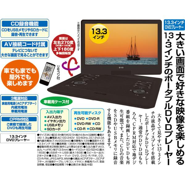 ポータブルdvdプレーヤー 車載 本体 CD 録音機能 13.3インチ DVDプレーヤー 熟年時代社