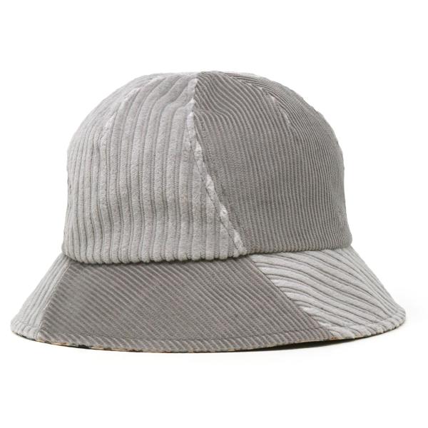 太さの異なるコーデュロイ生地をパッチワークのようにデザインした、秋冬のオシャレにピッタリなデザインです。つば裏のブランドの象徴、ハウスチェック柄がチラリとのぞきエレガントでお洒落な印象。程よいつばの大きさで日よけ対策にもおススメです。