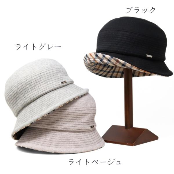 DAKS 帽子 ミセス ハット クロッシェハット 起毛 フェルト調 レディース 帽子 秋冬 日本製 サイズ調整可 ハウスチェック ツバ折り返し 上品 きれいめ