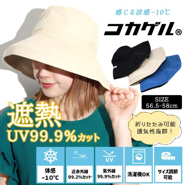 遮熱 つば広 ハット 帽子 コカゲル レディース 日よけ 遮光 遮熱 冷感 エッジアップ ミセス ハット 遮熱 春 ベージュ 夏 帽子 ブラック 紫外線対策 ブルー