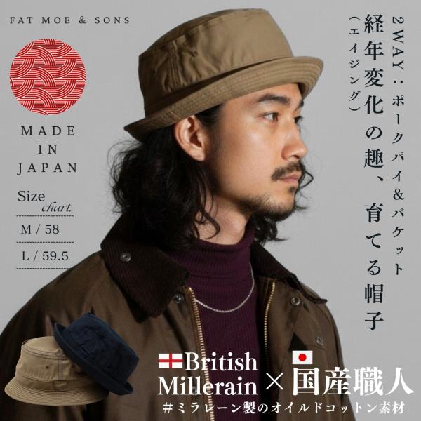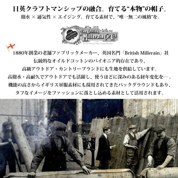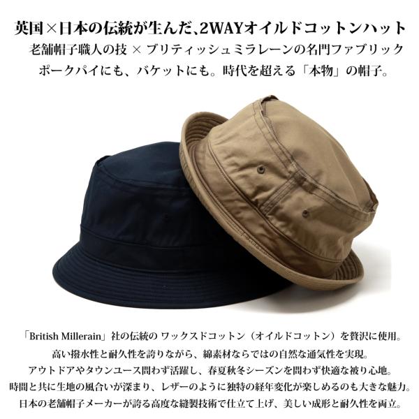 ポークパイハット メンズ British Millerain製 オイルドコットン 2WAY 帽子 カメラマンハット バケットハット ワックスドコットン 綿 育てる帽子 春夏 秋冬