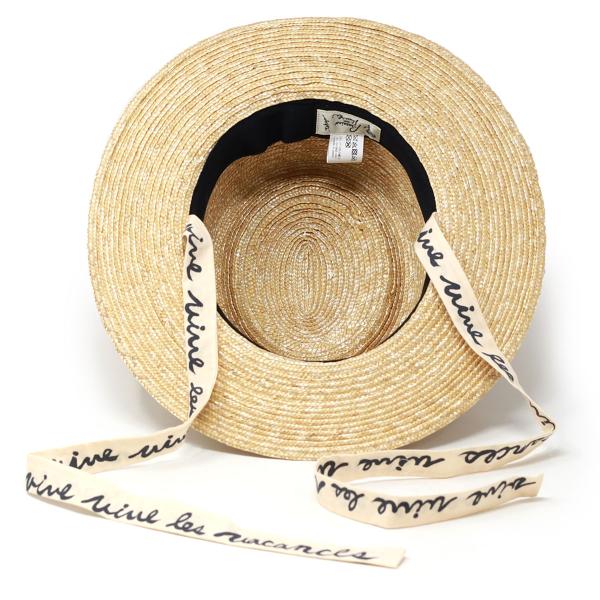 ふんわりと華やかで涼し気なチュールリボンと、顎紐リボンを飾り付けた麦ハットです。チュールのリボン部分は前にして思いっきりキュートにかぶってもOK!!顎紐のリボンにはブランドのオリジナル手書き文字がプリントされています。