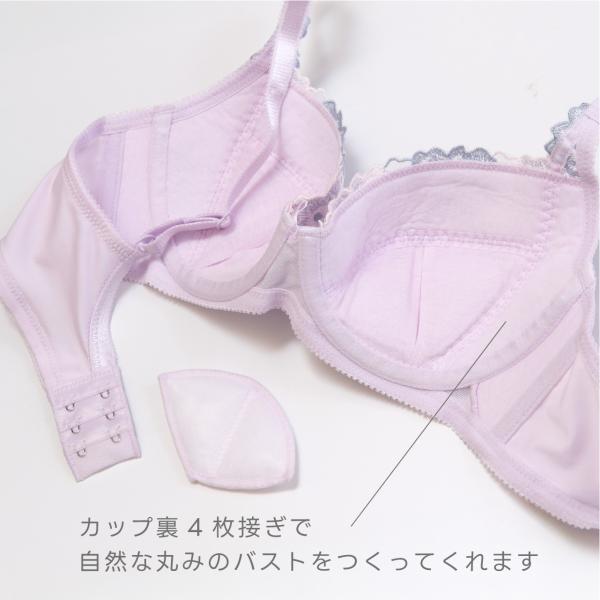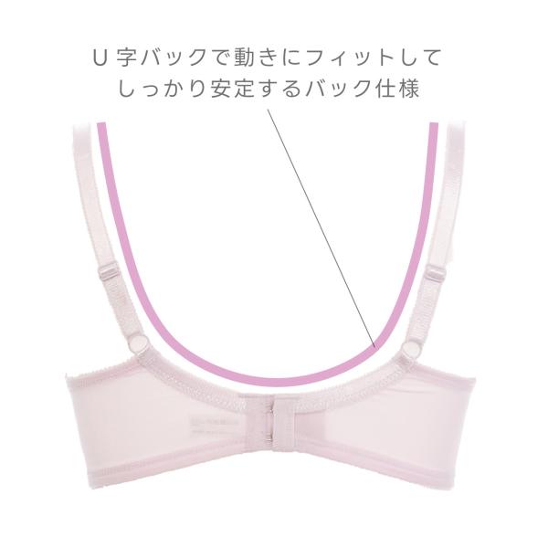 表のレースのリフトパネルで脇肉をバストにホールドし横流れを軽減。