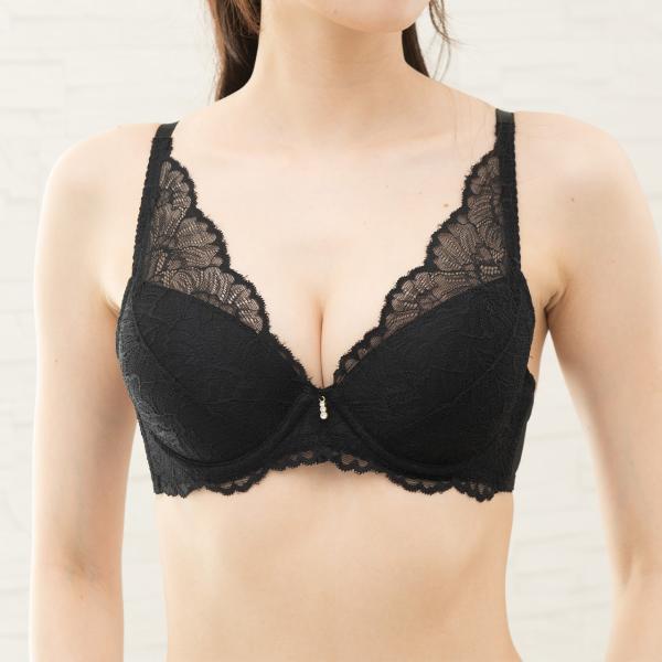 フルカップ風のストレッチレースがふっくらバストに包み込みフェミニンでいてセクシーな印象になります。