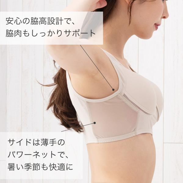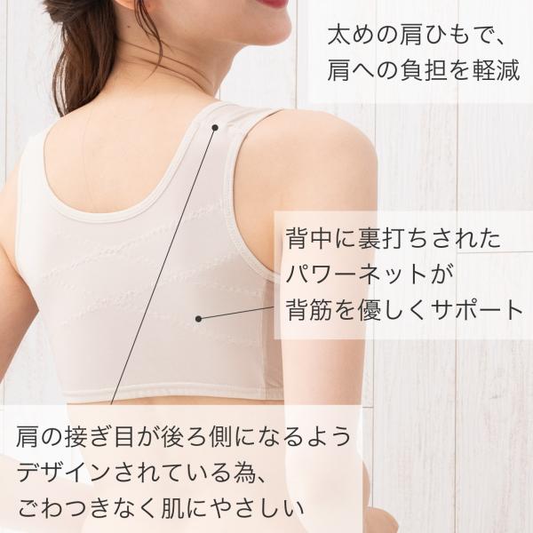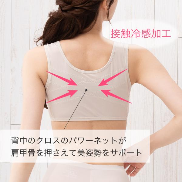背中のクロスに二重に重ねたパワーネットで、肩甲骨を押さえて美姿勢をサポート!