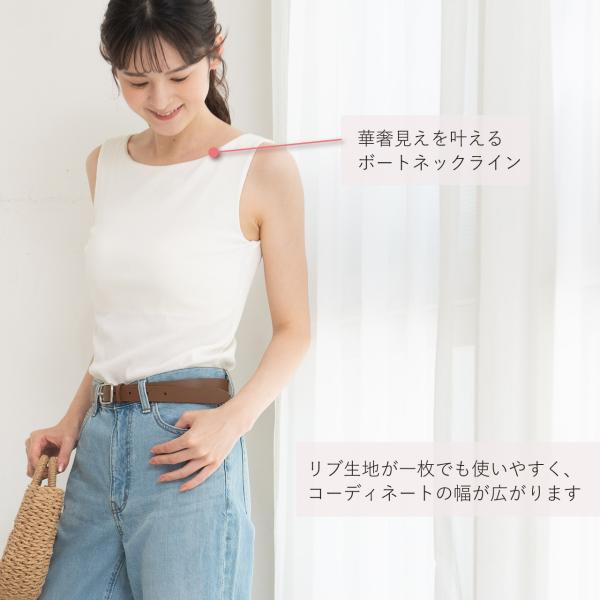 ブラトップ 美シルエット ボートネック デイフィール カップ付き トップス カップ付きインナー ノースリーブ タンクトップ リブ M L LL エレーヌ elene 爆買