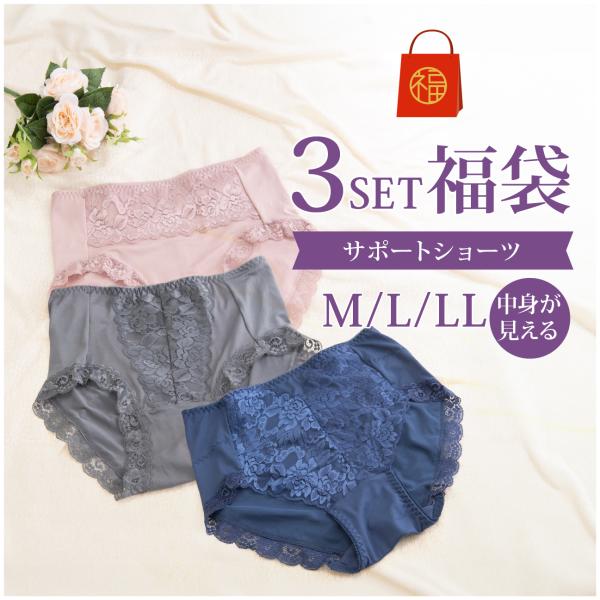 福袋 サポートショーツ 3セット 送料無料 ガードルショーツ 女性 レディース 下着 まとめ買い ショーツ 補正 骨盤 お腹おさえ 安い 深履き エレーヌ elene