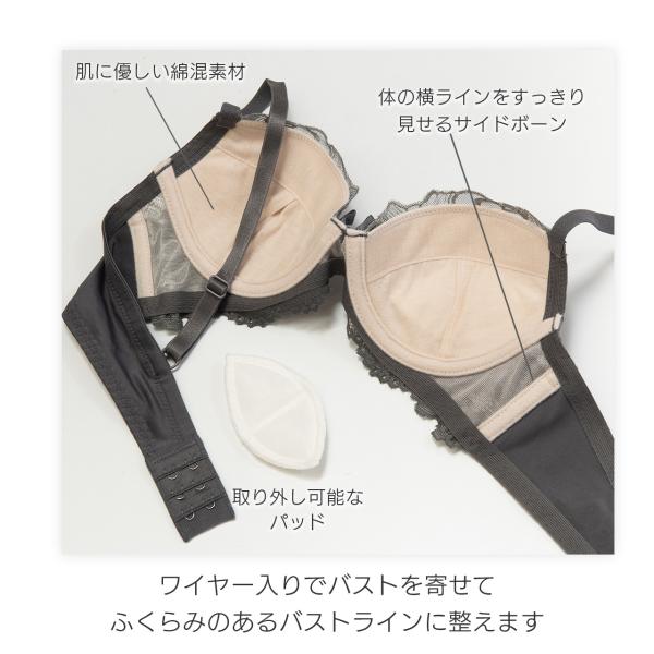 ワイヤー入りなのでバストの形をキレイに整える補正力があり、サイドボーンで身体の横ラインをすっきり見せ。