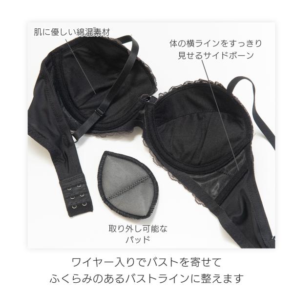 ワイヤー入りなのでバストの形をキレイに整える補正力があり、サイドボーンで身体の横ラインをすっきり見せ。