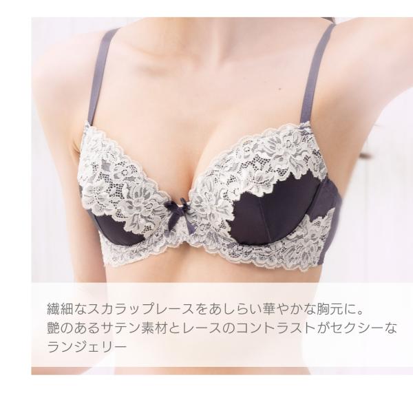 艶のあるサテン素材とレースのコントラストがセクシーなブラジャー&ショーツセットです。