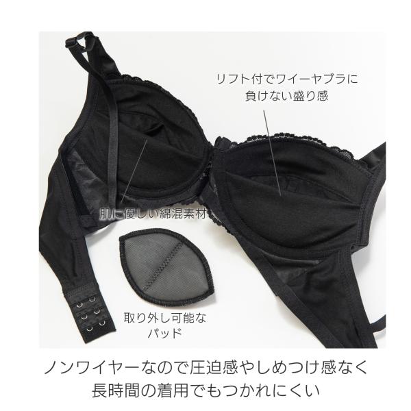 S-LL ノンワイヤーブラ & ショーツセット ミア ソニアブラック ノンワイヤー 盛れる 上下セット 小さいサイズ 女性 下着 レディース エレーヌ elene 爆買