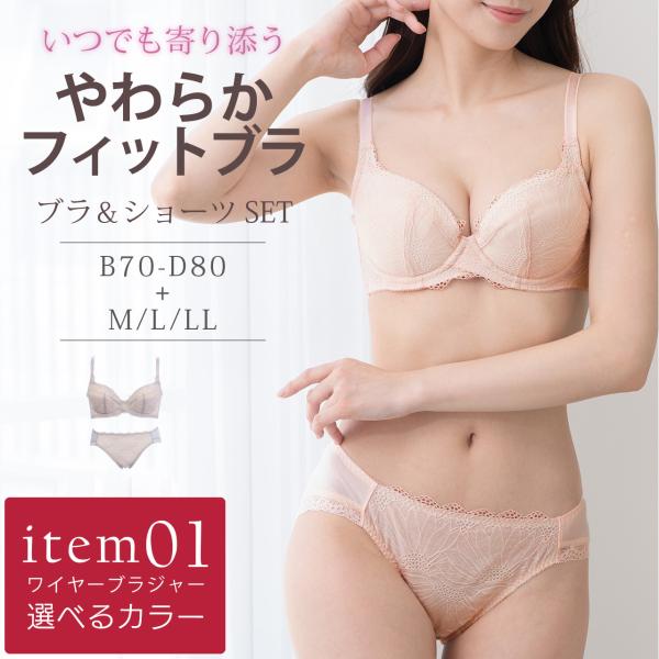 (アイテム1)やさしいカラーでナチュラルなデザインのやわらかフィットブラ ワイヤーブラジャー&ショーツセット