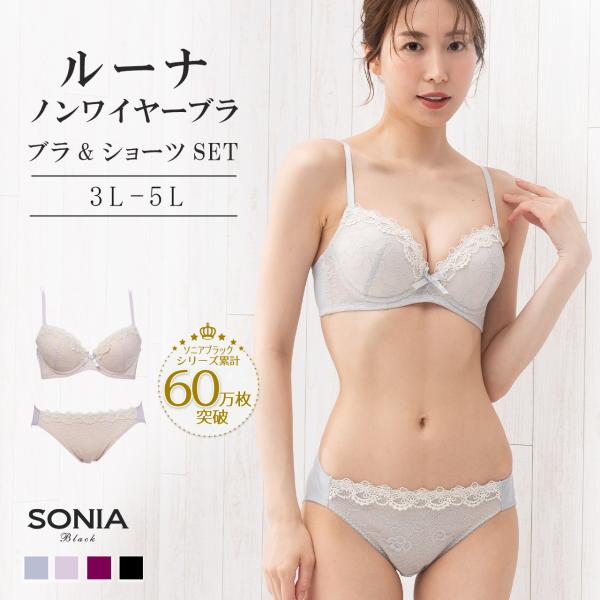 ファシネイト (E・Fカップ) ブラジャー & ショーツセット ソニアブラック 女性 下着 レディース プチプラ 上下セット セット 総レース エレーヌ elene 爆買