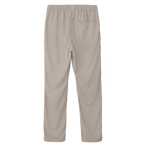 山小屋やキャンプでのリラックスタイムが快適に過ごせる、軽く穿き心地のよいパンツです。薄手でなめらかなリサイクルナイロンの生地は肌触りがよく、ゴムシャーリングのウエストも適度なフィット感。UVケア(UPF15-30、紫外線カット率85%以上)機能付き。静電気の発生を抑える静電ケア設計を採用。ヒップポケットに本体を収納できるパッカブル仕様で、ポケットティッシュ程度のサイズで携行できます。下山後の着替え、アプローチウエアとしても便利なアイテムです。
