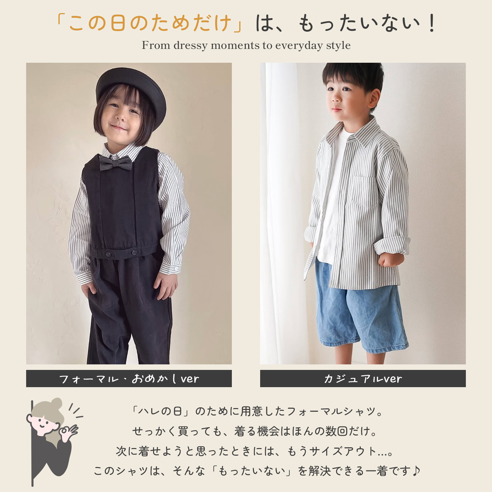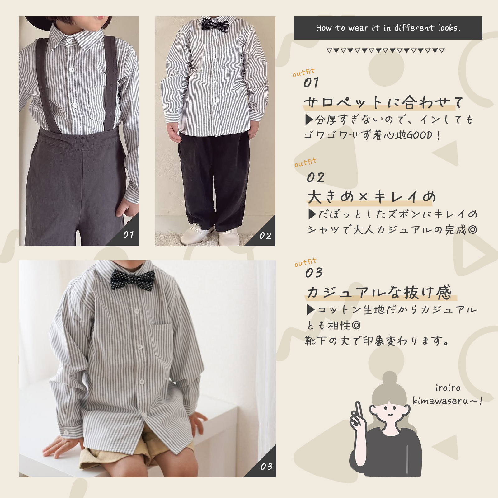 シャツ キッズ ストライプ 蝶ネクタイ付き 子供服 こども 子ども トップス カラーシャツ ネコポス