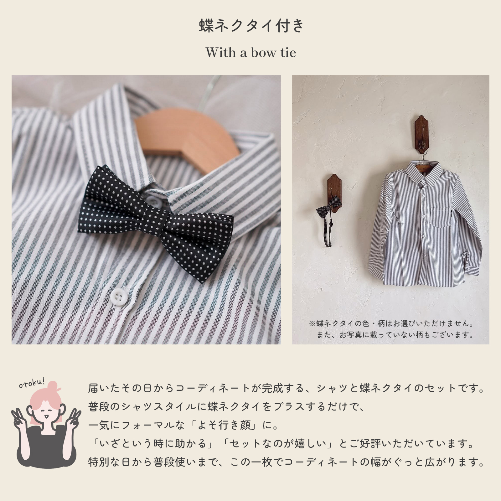 ●蝶ネクタイのカラー・柄はお選びいただけないので、ご了承下さい。